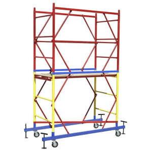 Базовый блок – это основание, на которое устанавливаются пропорциональные лестницы, образуя секции. Такая конструкция в собранном виде напоминает башню и называется вышка тура строительная металлическая.