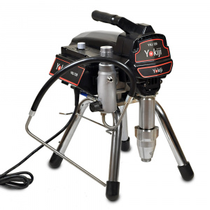YOKIJI YKJ 720 – компактный поршневой безвоздушный окрасочный аппарат с удлиненным поршнем; предназначен для высококачественной интерьерной окраски: работает с интерьерными красками низкой и средней вязкости. Также применяется для окраски фасадов и металлических и деревянных конструкций. Аппарат работает по принципу безвоздушного распыления: материал подается от окрасочного агрегата через краскопульт для безвоздушного распыления под высоким давлением. YKJ 720 оснащен электронной регулировкой давления и  дополнительным фильтром, установленным на корпусе окрасочного аппарата.